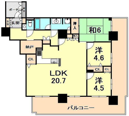 | 間取り | 3LDK(LDK20.7 洋4.6 4.5 和6.6) | 築年月(築年数) | 2003年10月(築22年3ヶ月) |