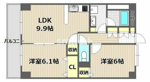 | 間取り | 2LDK(LDK9.9、洋6、洋6.1) | 築年月(築年数) | 2008年3月(築17年10ヶ月) |