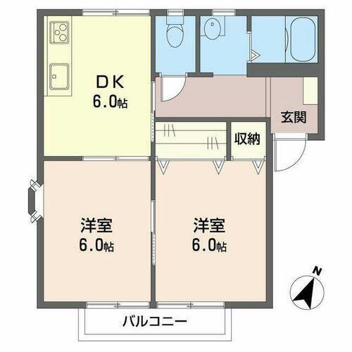 | 間取り | 2DK(DK6.0帖 洋室6.0帖 洋室6.0帖) | 築年月(築年数) | 1992年9月(築33年4ヶ月) |