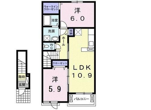 | 間取り | 2LDK(洋6.0・洋5.9・LDK10.9) | 築年月(築年数) | 2018年7月(築7年6ヶ月) |