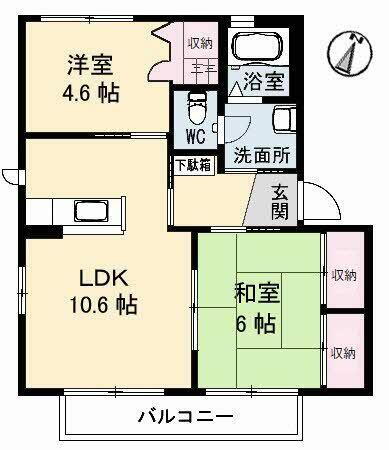 | 間取り | 2LDK(LDK10.6帖 洋室4.6帖 和室6.0帖) | 築年月(築年数) | 2003年8月(築22年5ヶ月) |