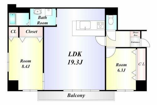2LDK(洋8.4、洋6.3、LDK19.3) |