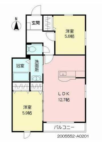 | 間取り | 2LDK(LDK12.7帖 洋室5.9帖 洋室5.6帖) | 築年月(築年数) | 2006年6月(築19年7ヶ月) |