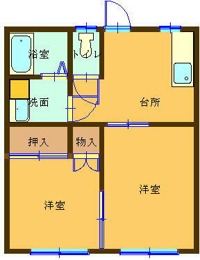 | 間取り | 2K(洋 6・4.5 K 4) | 築年月(築年数) | 1991年4月(築34年9ヶ月) |
