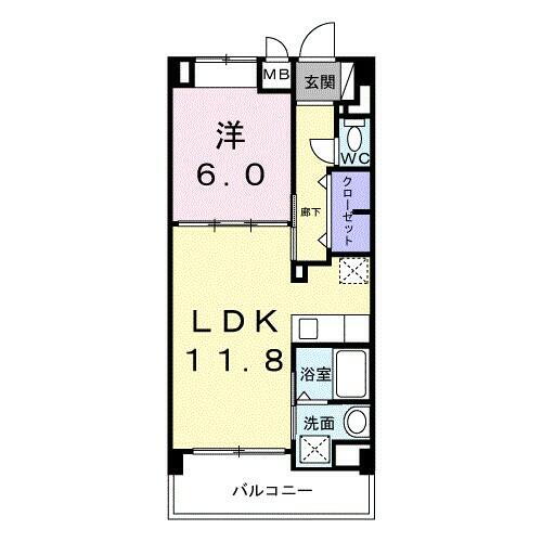 1LDK(洋室6畳/LDK11.8畳) |