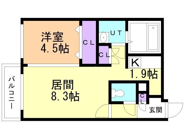 | 間取り | 1LDK(洋4.5 LD8.3K1.9) | 築年月(築年数) | 2022年10月(築3年2ヶ月) |