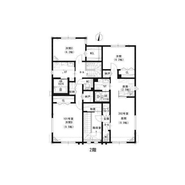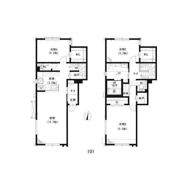 3LDK(洋9.5 洋6.2 洋6.2 LD12.7K3.5) |