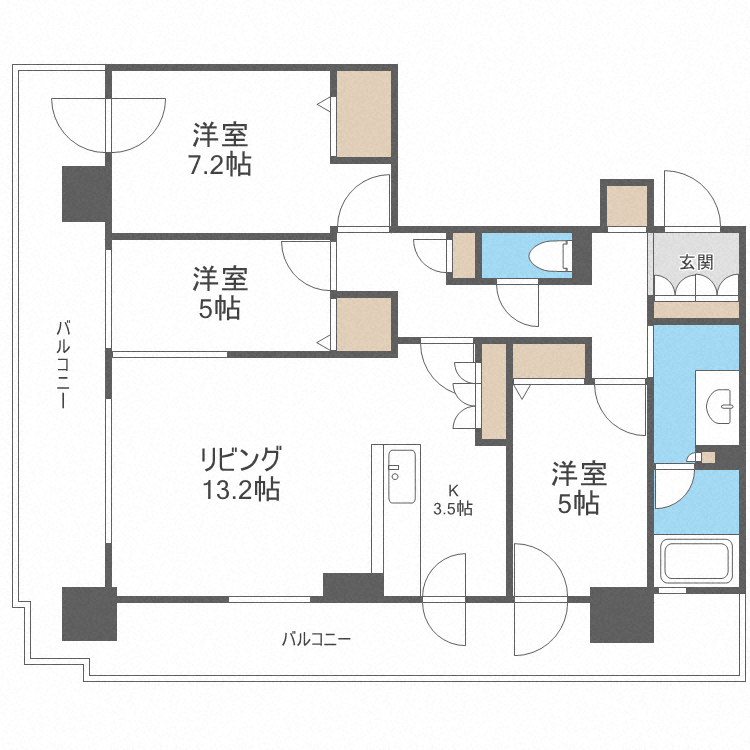 3LDK(洋7.2 洋5 洋5 LDK16.7) |