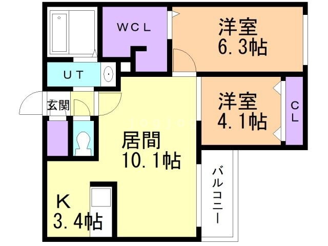 | 間取り | 2LDK(洋6.33 洋4.11 LD10.17K3.46) | 築年月(築年数) | 2021年8月(築4年4ヶ月) |