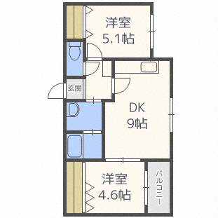 2LDK(洋5.1 洋4.6 LDK9) |