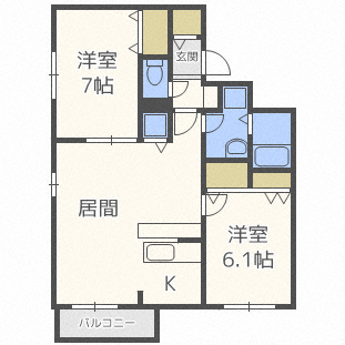 2LDK(洋7 洋6.1 LDK14.8) |