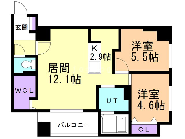 2LDK(洋5.5 洋4.6 LD12.1K2.9) |
