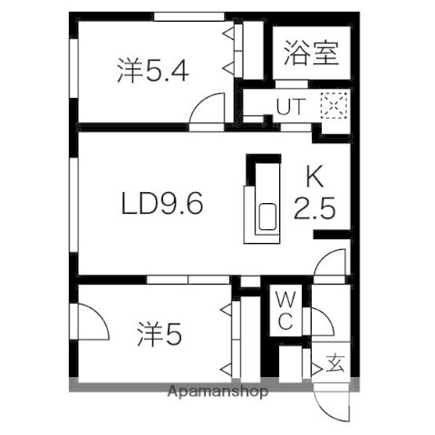 2LDK(洋5.4 洋5 LD9.6K2.5) |