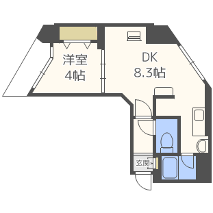 | 間取り | 1DK(洋4 DK8) | 築年月(築年数) | 2005年11月(築20年2ヶ月) |