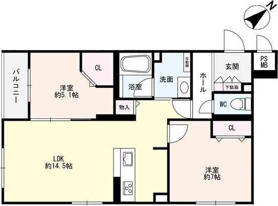 | 間取り | 2LDK(洋7 洋5.1 LDK14.5) | 築年月(築年数) | 2023年9月(築2年4ヶ月) |