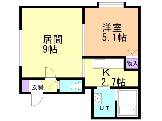 | 間取り | 1LDK(洋5.1 LD9K2.7) | 築年月(築年数) | 2000年10月(築25年1ヶ月) |