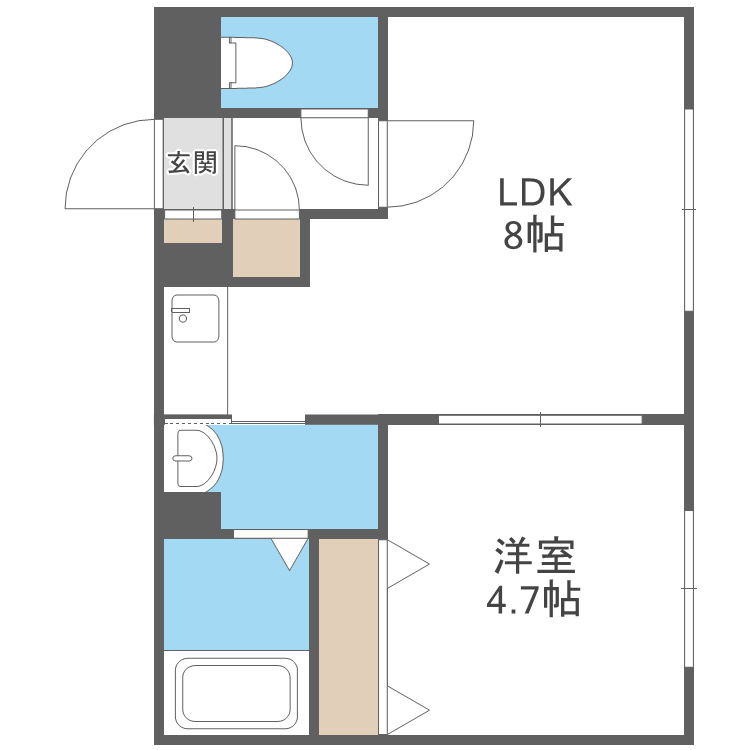 | 間取り | 1LDK(洋4.7 LDK8) | 築年月(築年数) | 1997年3月(築28年10ヶ月) |
