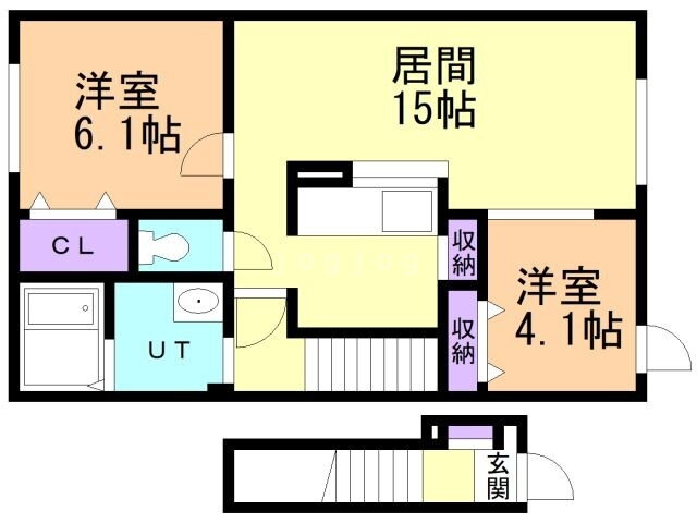| 間取り | 2LDK(洋6.1 洋4.1 LDK15) | 築年月(築年数) | 2011年7月(築14年6ヶ月) |