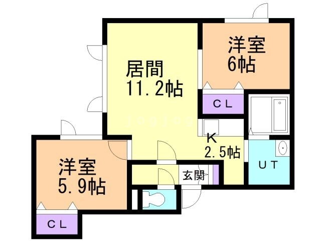 | 間取り | 2LDK(洋6 洋5.9 LD11.2K2.5) | 築年月(築年数) | 2023年2月(築2年11ヶ月) |