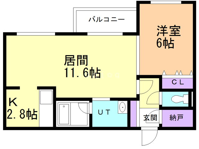 | 間取り | 1LDK(洋6 LD11.6K2.8) | 築年月(築年数) | 2017年1月(築8年12ヶ月) |