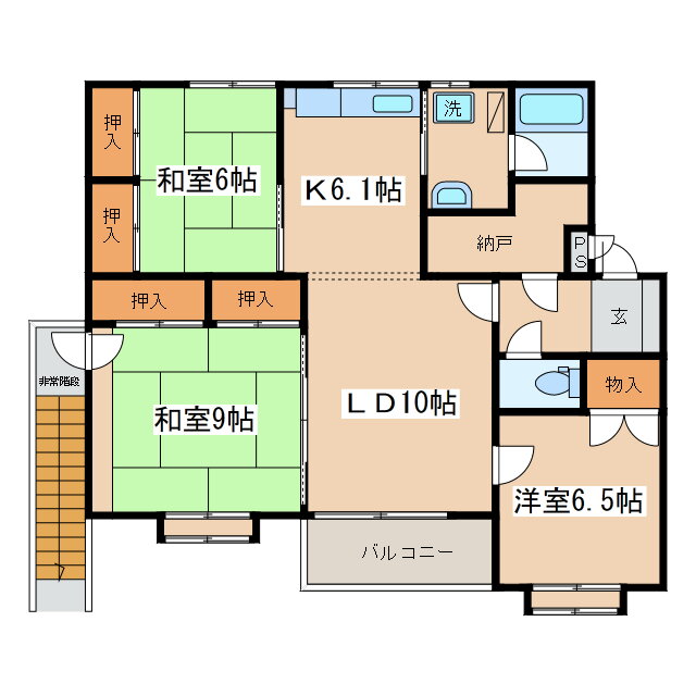 | 間取り | 3LDK(和9.0 洋6.5 洋6.0 LD10.0K6.1) | 築年月(築年数) | 1993年5月(築32年6ヶ月) |