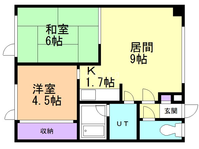 | 間取り | 2LDK(和6 洋4.5 LD9K1.7) | 築年月(築年数) | 1988年4月(築37年9ヶ月) |