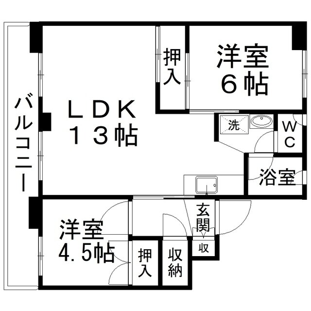 | 間取り | 2LDK(洋6 洋4.5 LDK13) | 築年月(築年数) | 1983年11月(築42年2ヶ月) |