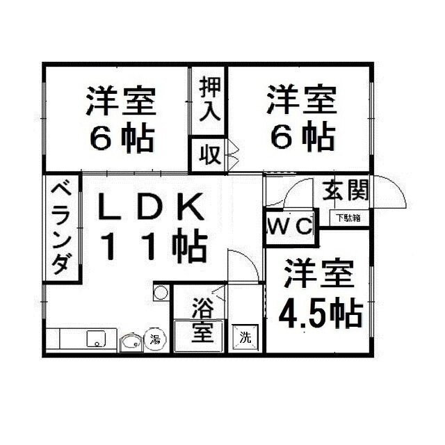 | 間取り | 3LDK(洋6 洋6 洋4.5 LDK11) | 築年月(築年数) | 1982年4月(築43年9ヶ月) |