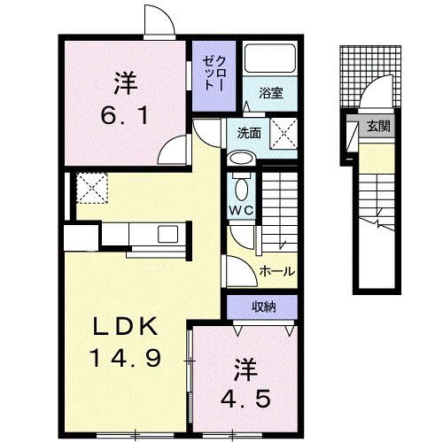 | 間取り | 2LDK(洋6.10 洋4.50 LDK14.90) | 築年月(築年数) | 2013年12月(築12年1ヶ月) |