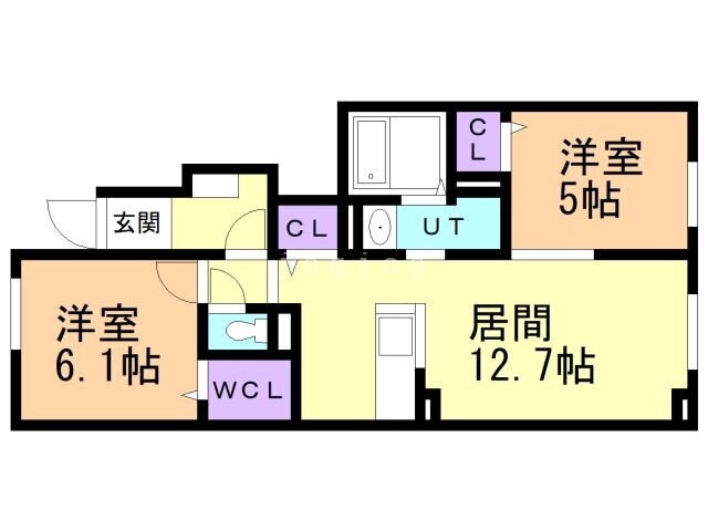 | 間取り | 2LDK(洋6.1 洋5 LDK12.7) | 築年月(築年数) | 2025年10月 新築 |