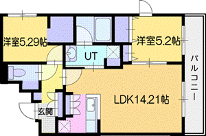 | 間取り | 2LDK(洋5.29 洋5.2 LDK14.21) | 築年月(築年数) | 2026年1月 新築 |