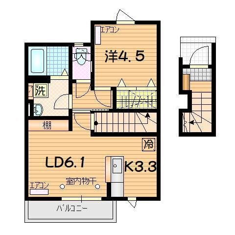 | 間取り | 1LDK(洋4.5 LD6.1K3.3) | 築年月(築年数) | 2022年3月(築3年8ヶ月) |