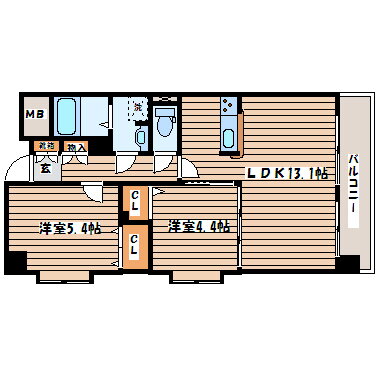 2LDK(洋5.4 洋4.4 LDK13.1) |