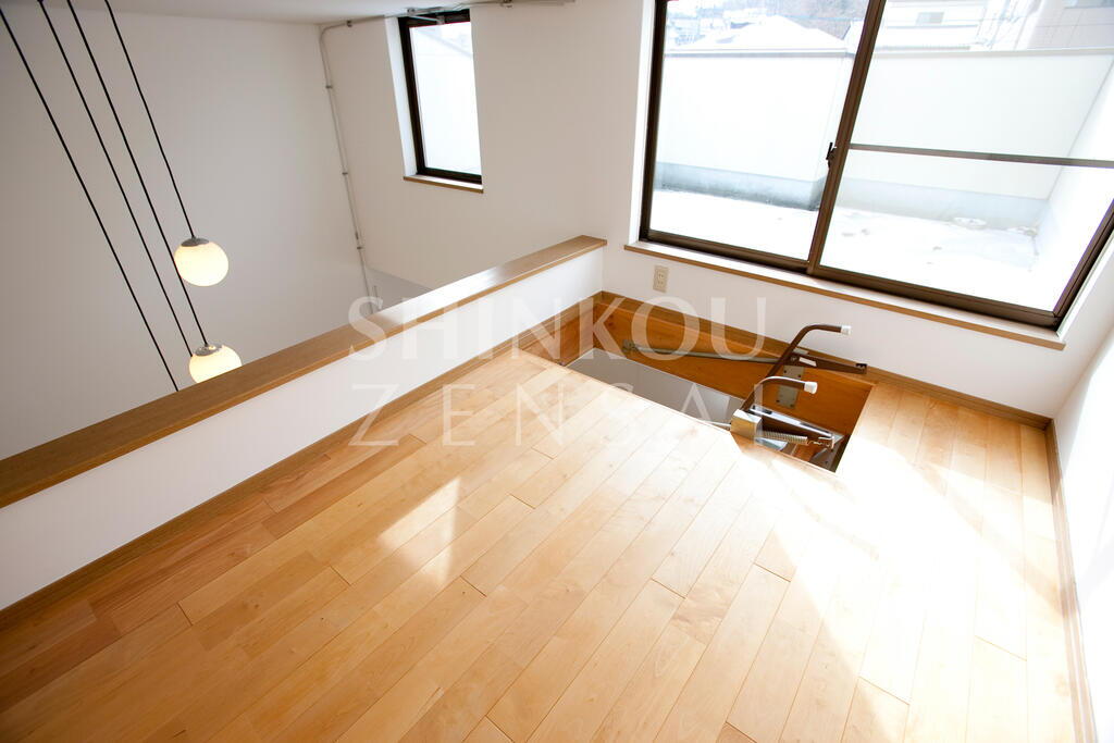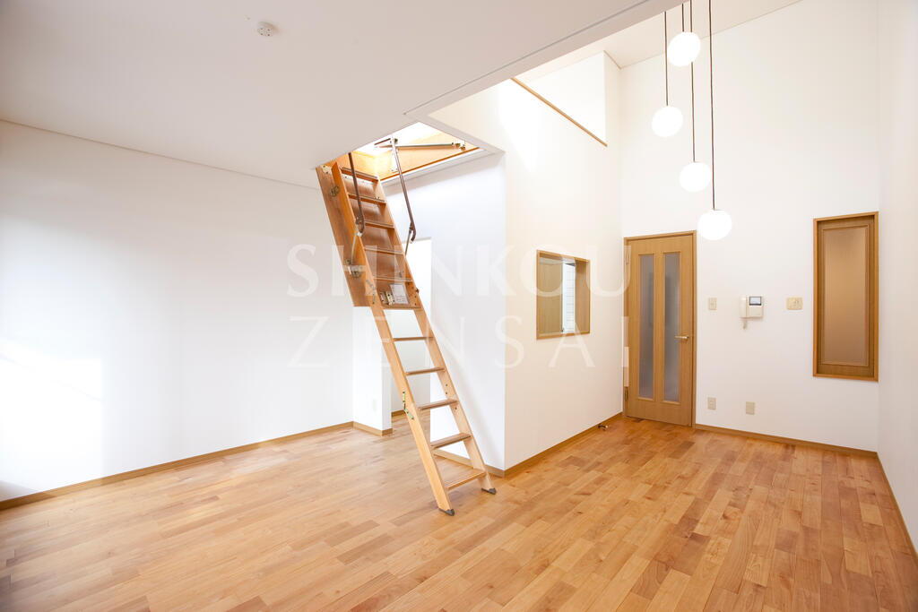 - メゾネットの3LDKです リビングには天窓のついた吹き抜けがあり、明るい日差しが注ぎ込む快適なメゾネット。ロフトと6帖大のルーフバルコニー付!