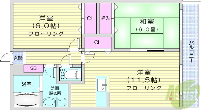 | 間取り | 2LDK(和6 洋6 LDK11.5) | 築年月(築年数) | 2002年4月(築23年9ヶ月) |