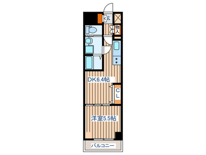 | 間取り | 1DK(洋5.5 DK6.4) | 築年月(築年数) | 2016年12月(築9年1ヶ月) |