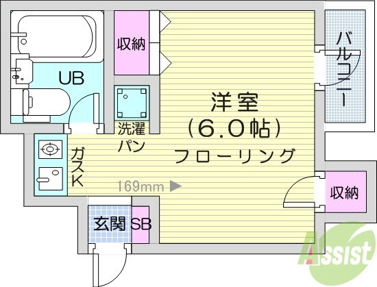 | 間取り | ワンルーム | 専有面積 | 19.51m2 |