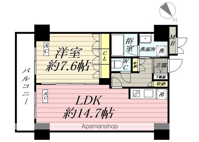 | 間取り | 1LDK(洋7.6 LDK14.7) | 築年月(築年数) | 2009年9月(築16年2ヶ月) |