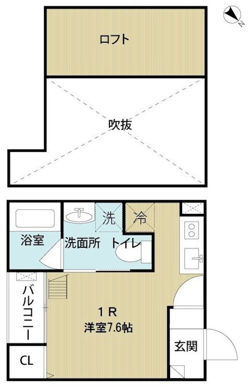 | 間取り | ワンルーム(洋7.6 ロフト 4.4) | 築年月(築年数) | 2013年12月(築11年11ヶ月) |