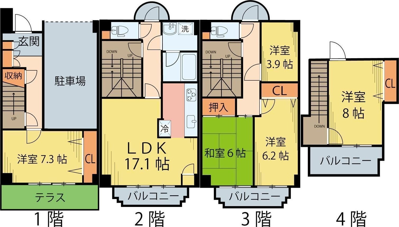 5LDK(和6 洋8 洋7.3 洋6.2 洋3.9 LDK17.1) |
