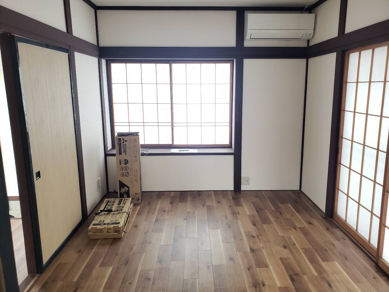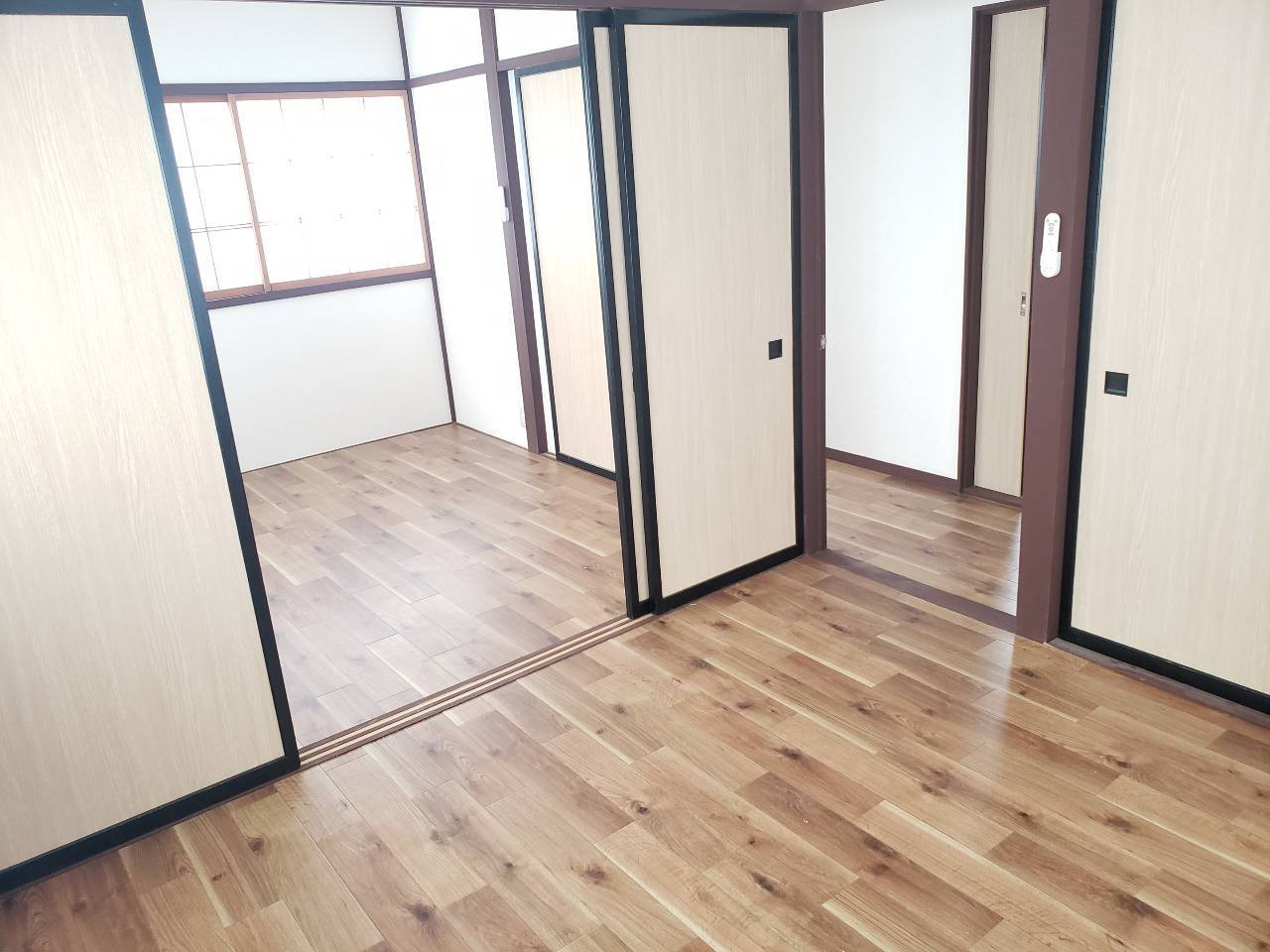 - 和モダンテイストへ内装リフォーム 内装リフォームの戸建貸家となります。(和室から洋室へ変わりました。)床・クロス・キッチン・浴室・トイレ・照明等新品でございます。