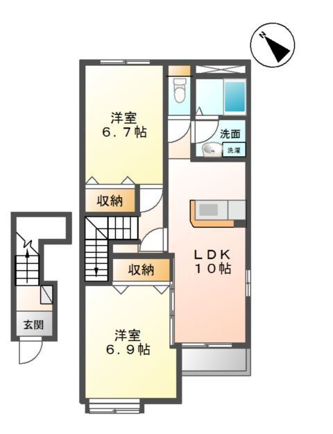 | 間取り | 2LDK(洋6.9 洋6.7 LDK10) | 築年月(築年数) | 2013年4月(築12年9ヶ月) |