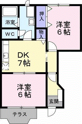 | 設備 | 冷房・暖房・エアコン・バス・トイレ別・トイレ・収納スペース・洗濯機置場・洗面所・BS端子・フローリング・シャンプードレッサ・温水洗浄便座・モニタ付インターホン・駐輪場・テラス・物置・プロパンガス・シャワー・複層ガラス・浴トイレ別・洗面所独立・シューズボックス・室内洗濯機置き場 |