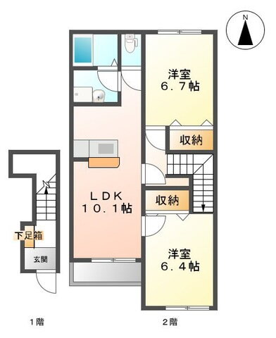 2LDK(洋6.7 洋6.4 LDK10.1) |