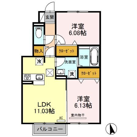 | 間取り | 2LDK(洋6.10 洋6.00 LDK11.00) | 築年月(築年数) | 2018年4月(築7年7ヶ月) |
