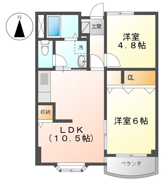 2LDK(洋6.0 洋4.8 LDK10.5) |