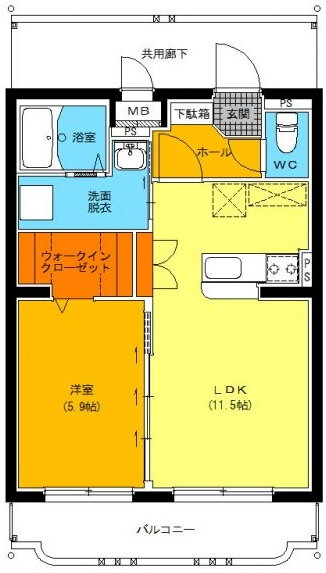 | 間取り | 1LDK(洋5.9 11.5) | 築年月(築年数) | 2021年1月(築4年10ヶ月) |