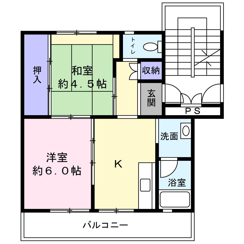 | 間取り | 2DK(和4.5 洋6 DK) | 築年月(築年数) | 1976年12月(築49年1ヶ月) |