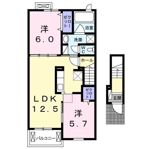 2LDK(洋6.00 洋5.70 LDK12.50) |