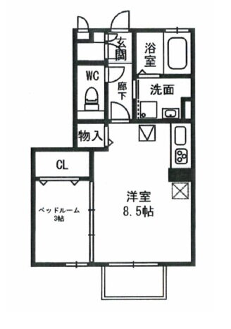 | 間取り | 1DK(洋8.5 洋3.0) | 築年月(築年数) | 2008年6月(築17年6ヶ月) |
